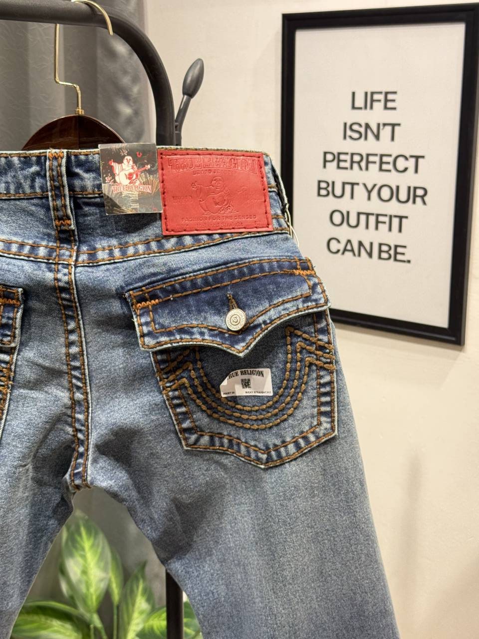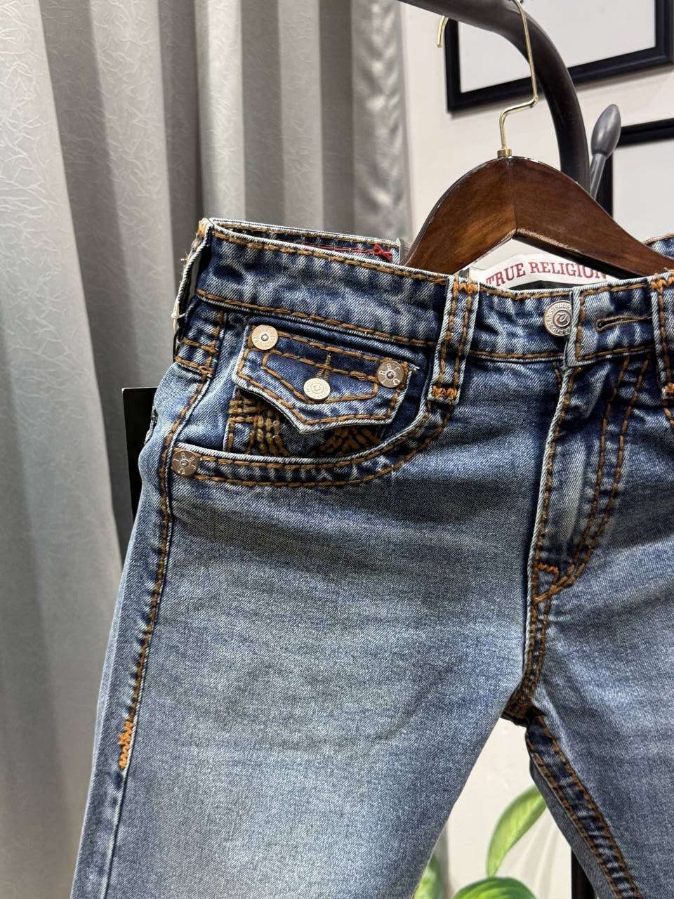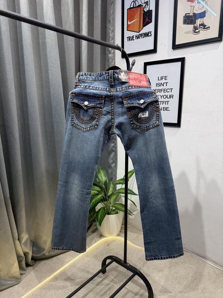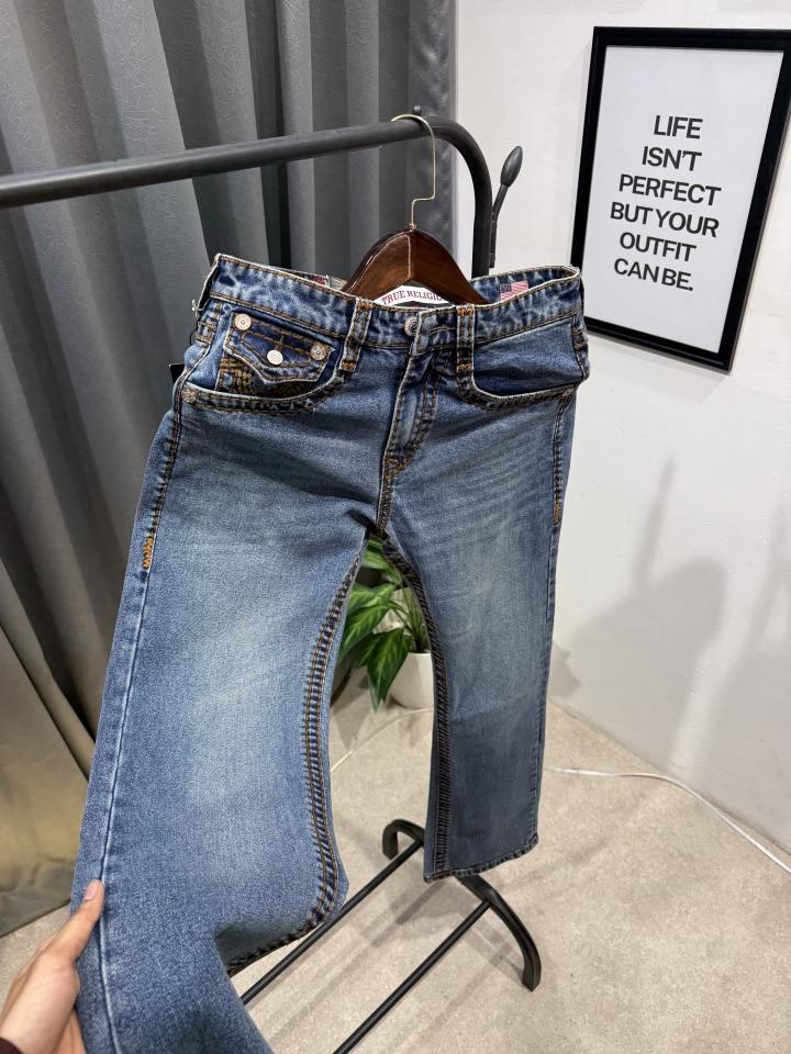 True religion boot cut blue imported denim with brand buttons