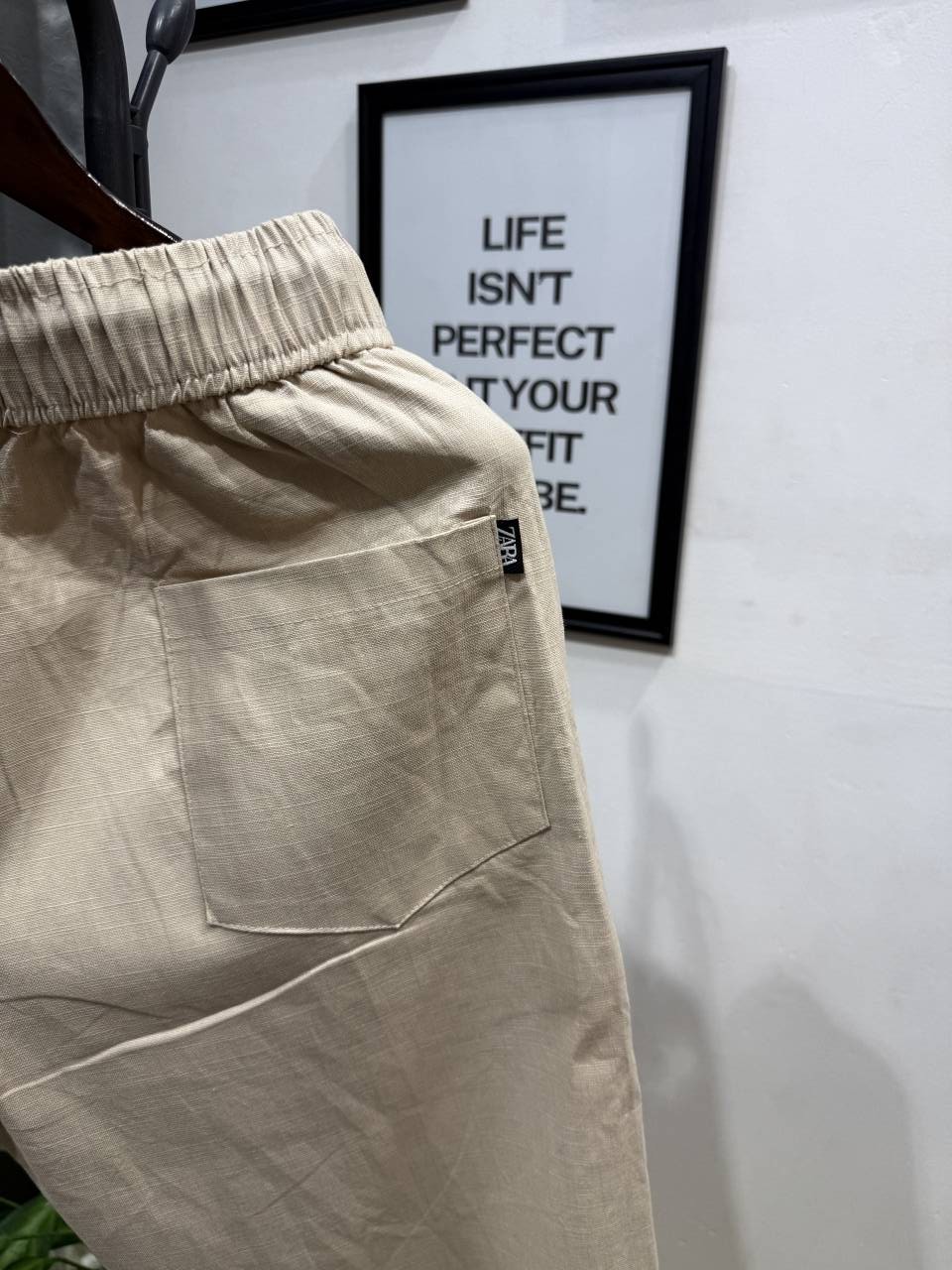 ? *Zara summer imported linen trousers with 3 pockets and branding all over now available in stock with extra carrybag*?