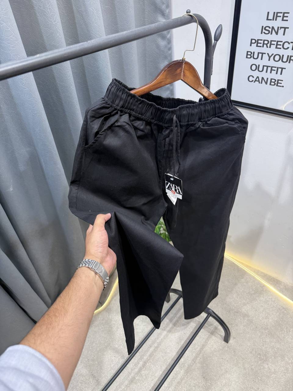 ? *Zara summer imported linen trousers with 3 pockets and branding all over now available in stock with extra carrybag*?