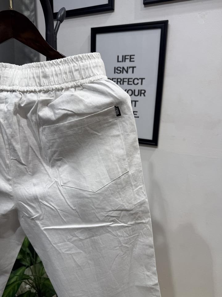 ? *Zara summer imported linen trousers with 3 pockets and branding all over now available in stock with extra carrybag*?